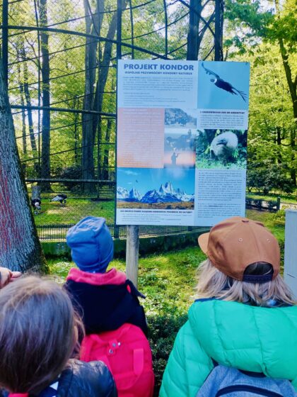 Lekcja zoologi w Zoo, dotyczyła głównie ptasiego świata. Dowiedzieliśmy się dlaczego ptaki maja różne dzioby, oglądaliśmy karmienie kondorów, dowiedzieliśmy się też dlaczego w świecie ptaków samce są bardziej kolorowe i okazałe, a samiczki szare i niewidoczne. Jako pamiątkę zakupiliśmy pióra ptaków z krakowskiego Zoo!
